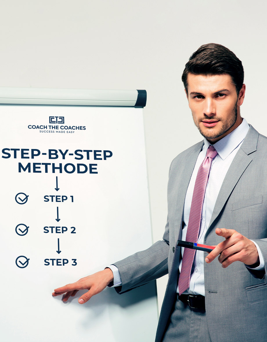 Mit unserer „Schritt-für-Schritt-Coaching-Business-Methode“ zeigen wir Führungskräften über 40, wie sie ihre vorhandenen Fähigkeiten nutzen, um ein erfolgreiches Coaching-Business aufzubauen. Unser System führt sie durch alle notwendigen Schritte: von der Positionierung als Coach über die Entwicklung eines klaren Angebots bis hin zur Kundengewinnung.